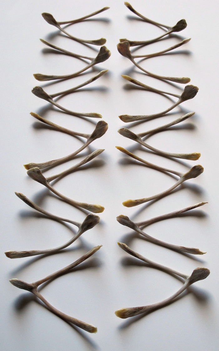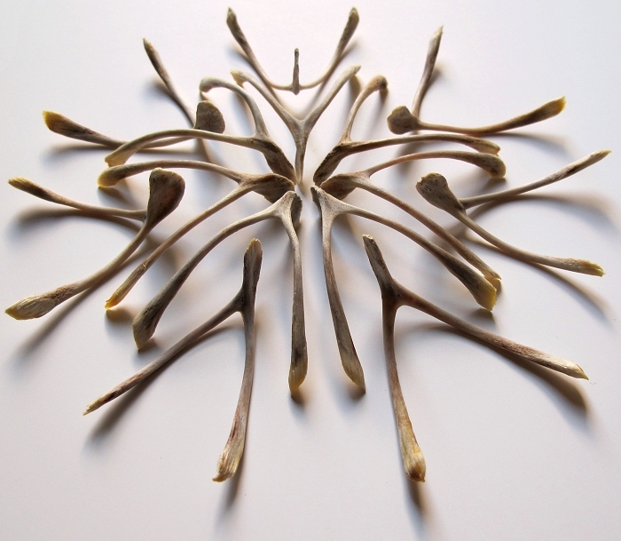 the furcula, commonly called a wishbone, is the forked, flexible bone in a bird's breast it is essentially a fusing of the clavicle bones (collarbones) these furcula are from chickens |