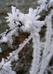 I heard later that these heavier frosts may have come about because of seeding they were doing near the Airport (about 7 miles NW) to knock down the fog. Whatever the reason, it was quite a show. |