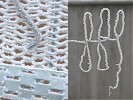 After seeing these fences I started thinking about making something that would use different materials and surfaces to interact with frost development, just trying to see what might result. With another cold night approaching I very quickly put together some bits & pieces I had in the shop, strapped it to a shovel and planted it in the backyard. This was the first piece listed above. I did get some frost, and in nice patterns, but I never did see the heavy-spined hoar frost again (maybe they had stopped seeding the fog). |